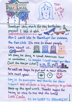 クレイグがファンクラブ宛にお礼の手紙を書いてきたんですがこちら↓